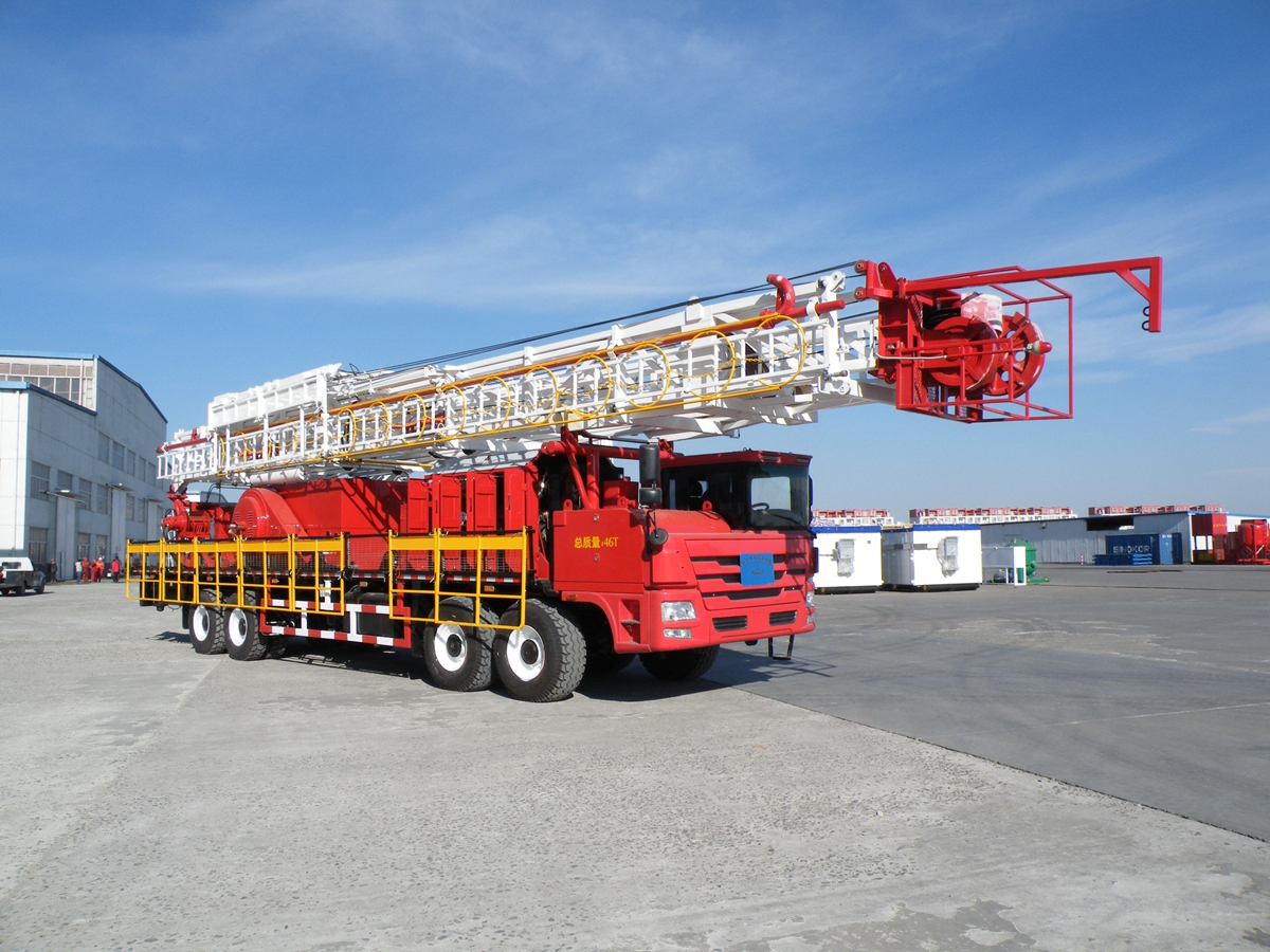 車(chē)裝修井機(jī)是將動(dòng)力系統(tǒng)、絞車(chē)、井架、游車(chē)系統(tǒng)及傳動(dòng)系統(tǒng)等部件安裝于自走式底盤(pán)上。整機(jī)具有結(jié)構(gòu)緊湊,集成度高,占地面積小,移運(yùn)快捷,搬遷效率高等特點(diǎn)。